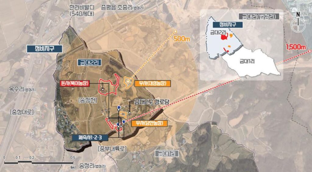 시는 이번 공모 선정으로 국・도비 80억원을 포함해, 총사업비 123억원을 확보했다. 2029년까지 금대2리 일원 돼지 축사 1개소, 소 축사 2개소 및 폐축사 등 총 2만3천368㎡를 철거하고 복합문화체육시설, 마을공원 등 주민 편의시설을 조성해 그동안 고통받은 주민의 삶의 질과 복지 향상을 도모할 계획이다.